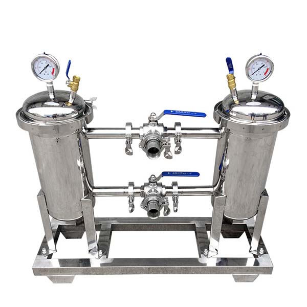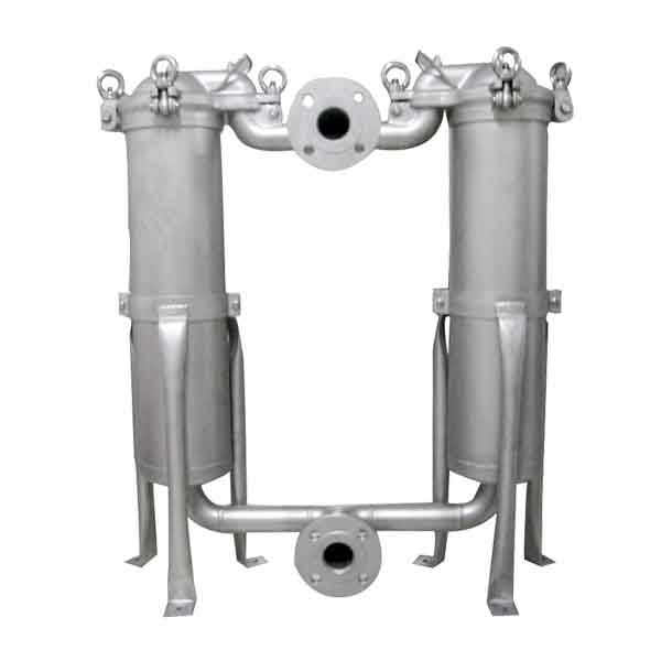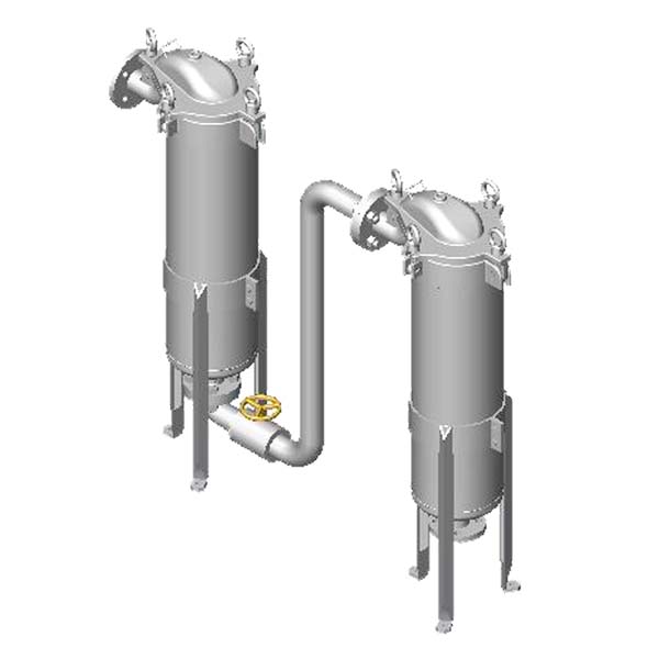 并聯(lián)袋式過濾器是由兩臺(tái)袋式過濾器用管道按并聯(lián)結(jié)構(gòu)進(jìn)行組合,頂部裝有壓力表、排氣閥,管道接頭采用脹合連接,經(jīng)1.0MPa水壓試驗(yàn),三通外螺紋旋塞啟閉靈活,該設(shè)備結(jié)構(gòu)緊湊,操...